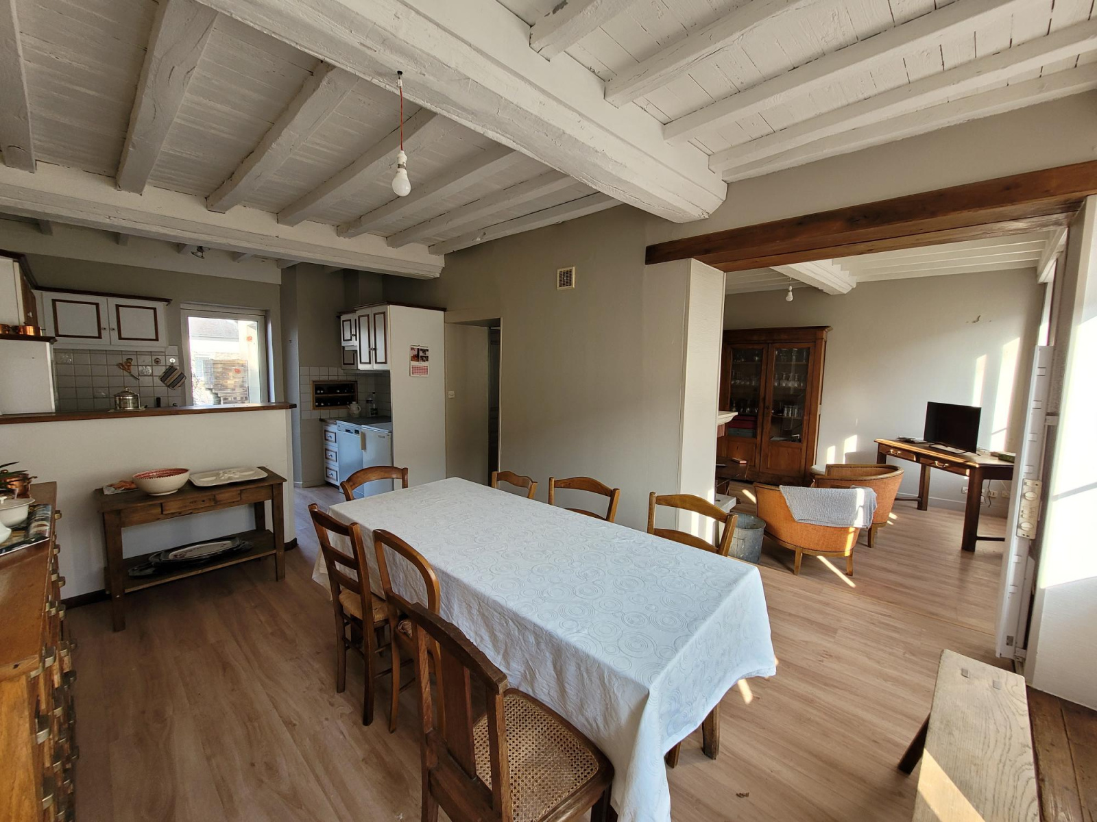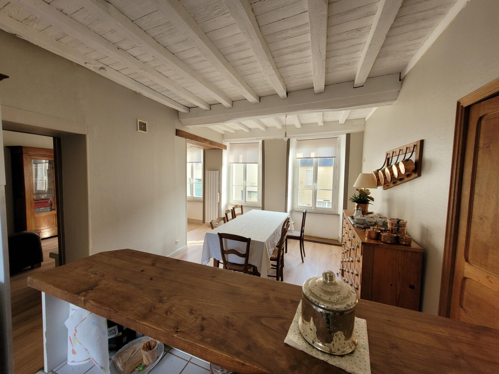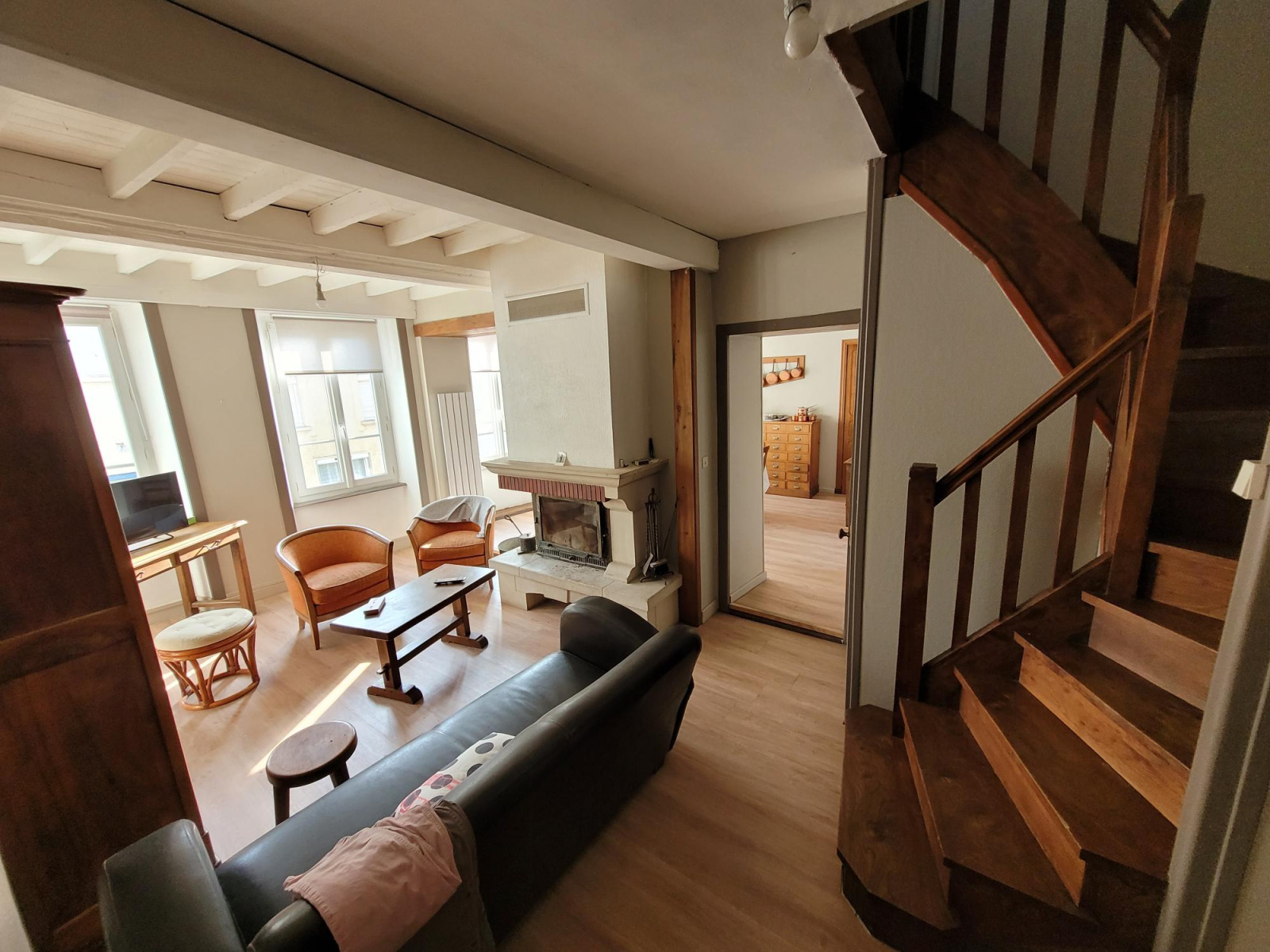 Bel immeuble à vendre en plein centre. Chaleureux logement d'habitation d'environ 130m² composé de beaux espaces de pièce de vie. Cuisine ouverte sur coin repas et salon ouvert avec insert central, salle à manger, 2 chambres. Véranda et terrasse. Possibilité chambres supplémentaires ou logements indépendants. Local professionnel de 90m² actuellement loué. Atelier de 65m² au sol. DPE G. BERYL IMMOBILIER